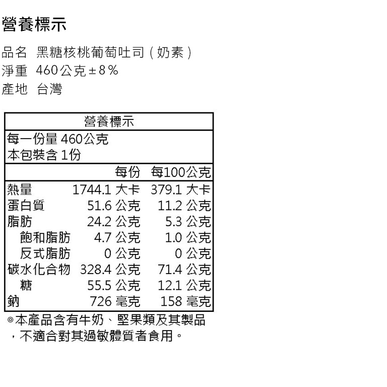 樸實黑糖甜味配上核桃堅果及香甜葡萄乾