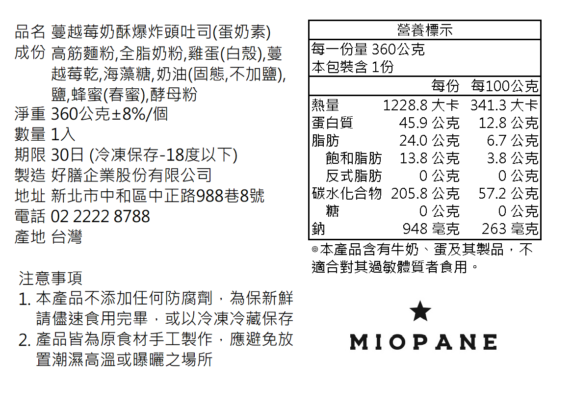 內容物:新鮮蔓越莓果乾、奶酥餡、酥菠蘿