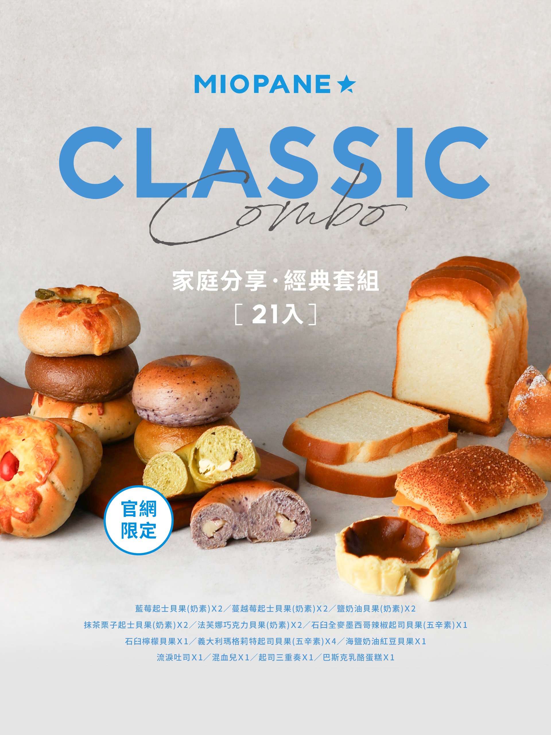 「嚴選人氣貝果與麵包,甜鹹相宜,宜晨食、宜分享,一件即享免運,居家備糧最為相宜。」