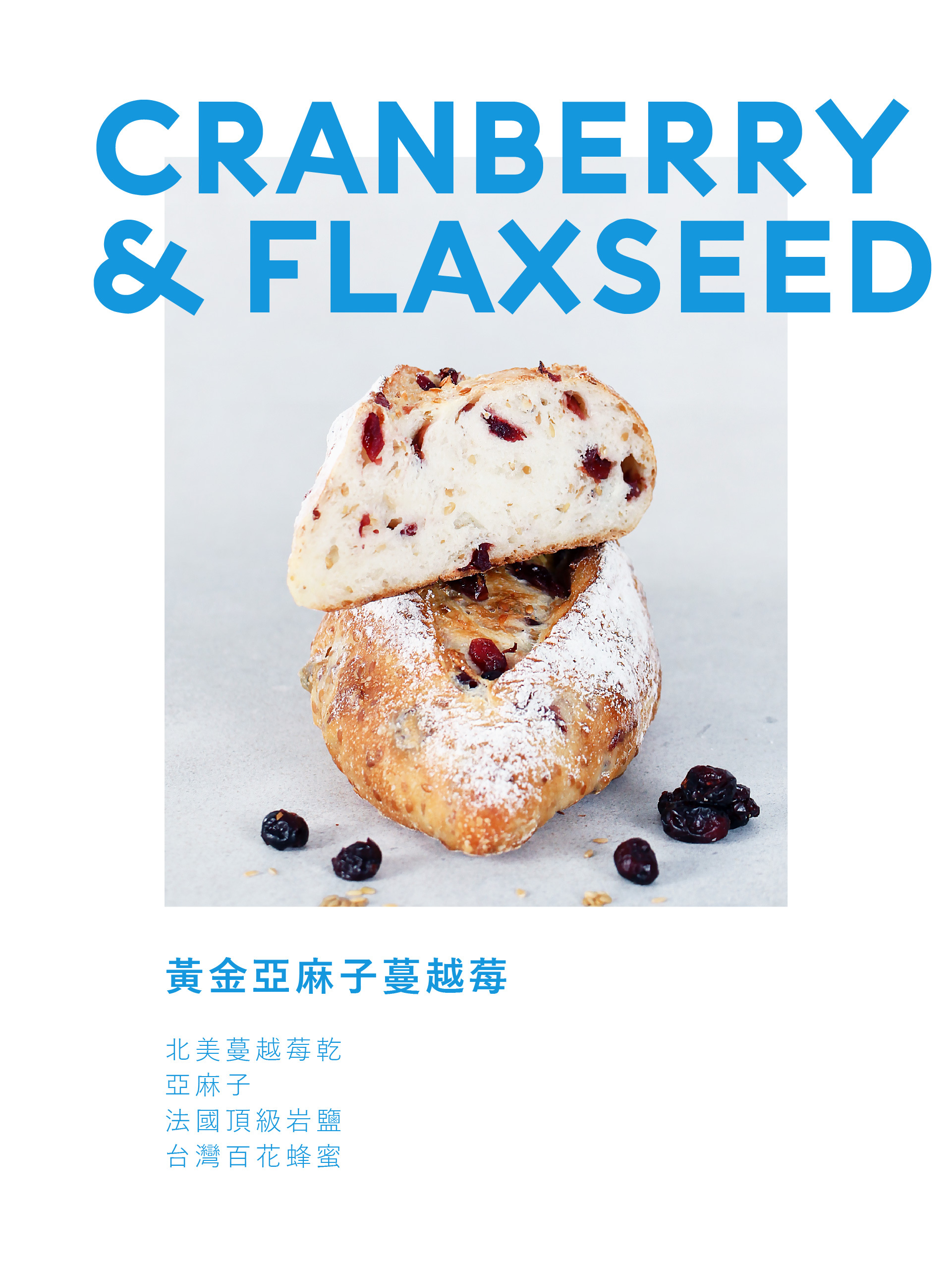 新鮮的蔓越莓乾與黃金亞麻籽遍布其中