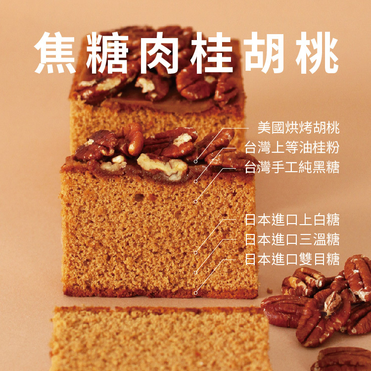 綿密香甜的蛋糕體與脆口胡桃,以及肉桂香氣,