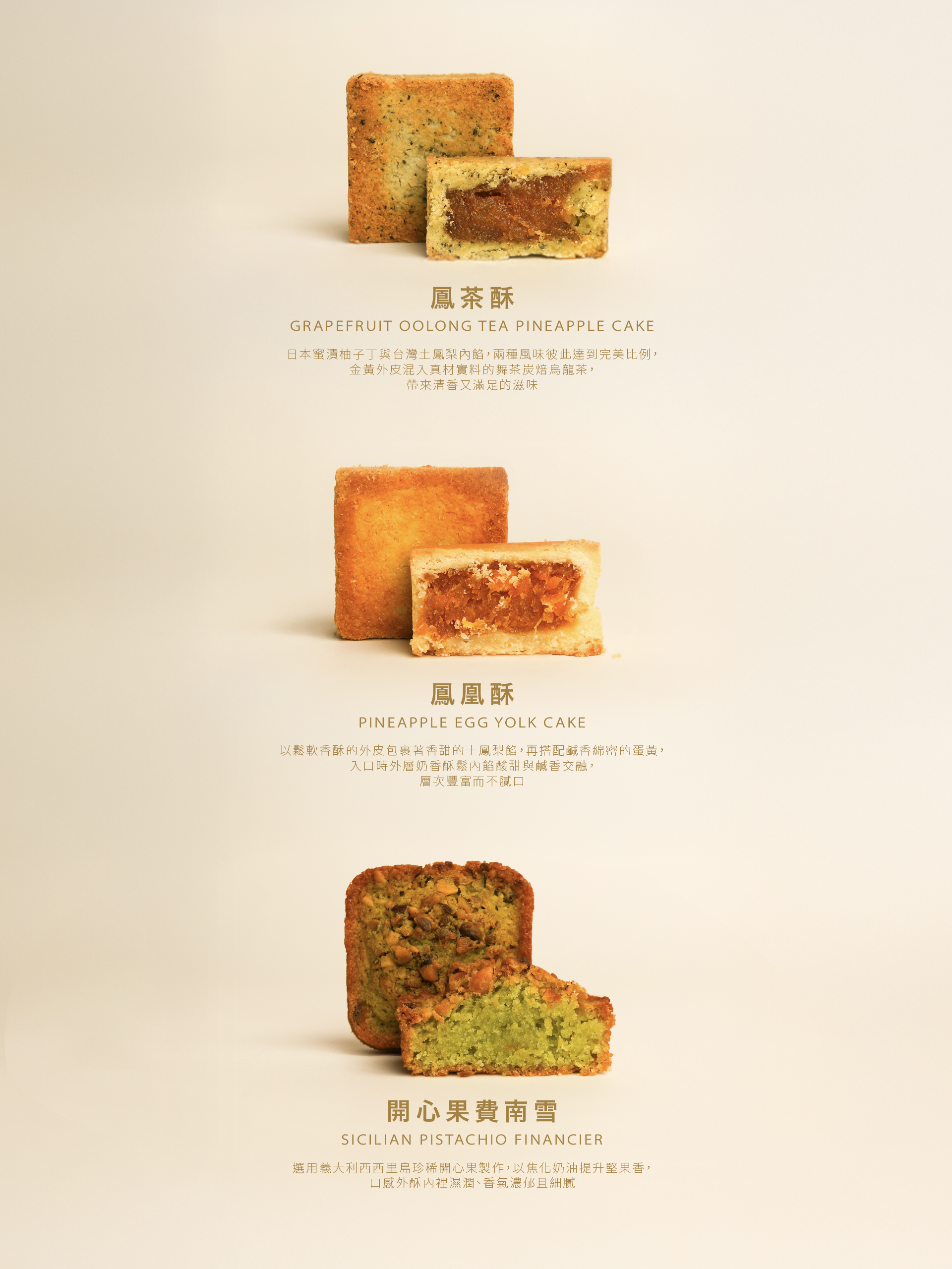 • 鳳凰酥:土鳳梨+鹹蛋黃,酥鬆濃香、酸甜不膩。